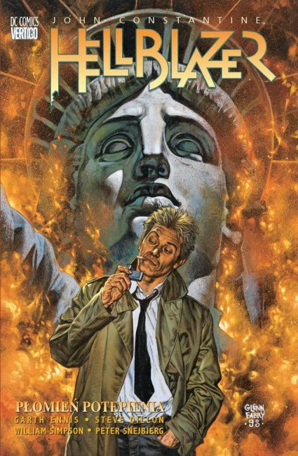 W Płomieniu potępienia Ennis i Dillon, twórcy nagradzanego Kaznodziei, uznanego przez magazyn Spin za „najbardziej porywający komiks dla dorosłych”, zaprosili do współpracy rysowników Williama Simpsona i Petera Snejbjerga.