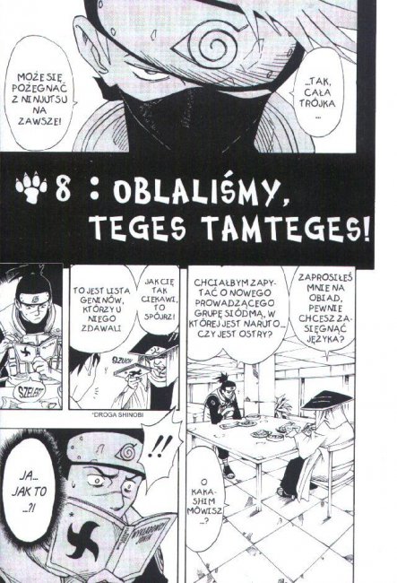 Kakashi tłumaczy swoim podopiecznym, że w sprawdzianie nie chodziło o zdobycie dzwoneczków, lecz o pracę zespołową i nie pozwolenie na skłócenie grupy. Chwilę później, kiedy Sakura i Sasuke pomimo zakazu dzielą się z Naruto swoim obiadem, Kakashi oświadcza, że właśnie jako pierwsi spośród wszystkich jego uczniów...zdali egzamin, ponieważ mieli na tyle odwagi żeby sprzeniewierzyć się poleceniom i zadbać o swojego towarzysza. Naruto, Sakura i Sasuke zostają Geninami i rozpoczynają wykonywanie zadań. Ambitny Naruto jest jednak znudzony najłatwiejszymi zadaniami z kategorii D i swoim marudzeniem wymusza na Hokage przydzielenie ambitniejszego zadania - ochrony pewnego zgryźliwego dziadunia, który na dodatek od początku czepia się Naruto. Już na samym początku okazuje się, że pan Tazuna nie napisał we wniosku o przydzielenie ochrony całej prawdy i zaskoczonych młodych ninja atakują chuninowie z Krainy Mgieł. Dzięki przytomności Sasuke i technice Kakashiego napastnicy zostają pokonani, a jedyny ranny to Naruto, który sam jest sobie winien, bo spękał. Nie zamierza jednak poddać się, ani być ciężarem dla grupy, ani tym bardziej przegrać z Sasuke - zadanie będzie kontynuowane. Pan Tazuna wyjawia wreszcie prawdę o czyhającym na niego zagrożeniu, a Kakashi wzmacnia czujność spodziewając się kolejnego ataku. Tym razem jednak nie będzie tak łatwo, z Zabuzą Momochi "Diabłem wcielonym z krainy mgieł" nawet Kakashi ze swoja tajemną techniką wzrokową - Sharingenem - ma problemy. Technika mgielnego ukrycia, technika wodnego więzienia, technika wodnego podziału...Zabuza gładko zmierza do zwycięstwa, dopóki na drodze nie staje mu Naruto udowadniając, że wyniósł naukę z egzaminu na genina. Przewaga znowu zaczyna się przechylać na stronę Kakshiego i jego towarzyszy, jednak w decydującym momencie Oinin polujący na zbiegłych ze swych osad ninja i zabija Zabuzę. Kakashi odczuwa mimo wszystko pewien niepokój (całkiem zresztą słusznie) więc zarządza swoim podopiecznym kolejny trening - szkolenie panowania nad energią pochodzącą z czakr.