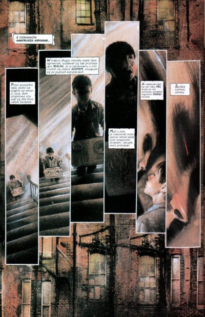 Jeden z najsłynniejszych amerykańskich komiksów. Arkham Asylum to klasyczna opowieść z Batmanem w roli głównej, który musi stawić czoło szaleńcom z zakładu psychiatrycznego Arkham. Komiks pełen symboliki i nawiązań – można w nim znaleźć odniesienia do filozofii Junga oraz do kart Tarota. Scenarzysta Grant Morrison stawia wiele pytań dotyczących ludzkiej psychiki, ale na żadne nie udziela jednoznacznych odpowiedzi. To przerażająca podróż w głąb ludzkiego wnętrza, obsesji i szaleństwa. Niebanalny scenariusz doskonale uzupełniają niepokojące, ocierające się o szaleństwo rysunki Dave’a McKeana, znanego ilustratora okładek serii Sandman.