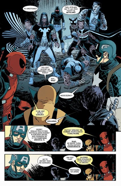 Kto oczekiwał, że w każdej kolejnej przygodzie Deadpool będzie tylko dowcipkował i walczył, tym razem może być zaskoczony. W tym odcinku jest tak ostro, że nawet główny bohater traci momentami ochotę na żarty. Co prawda zaczynamy lekturę komiksu od wizyty w Nowym Jorku lat 70. XX wieku i radosnej łomotaniny z Lukiem Cage'em i Iron Fistem, ale potem robi się znacznie poważniej. A Deadpool wspólnie z Kapitanem Ameryką i Wolverine'em muszą jeszcze raz zmierzyć się z konsekwencjami programu Broń X.