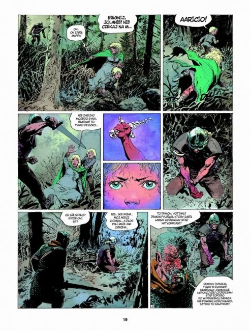 Thorgal, Jolan i spodziewająca się dziecka Aaricia powracają do wioski Wikingów, w której się wychowali. Nowy władca wikingów - Vor Wspaniały, nie mogąc zrozumieć pokojowej natury Thorgala zaczyna "polowanie" na niego i jego rodzinę... Wysłani przez Vora ludzie mający zamordować jego rodzinę ginę w tajemniczych okolicznościach w lesie. Mówi się o grasująym tam demonie. Aaricia i Jolan uciekają oprawcom jednak w lesie musza się rozdzielić. Aaricia czuje, iż zaczyna się poród. Ostatkiem sił trafia do wilczej nory, gdzie wilczyca także zaczyna rodzić. Tymczasem Thorgal powoli rozprawia się z ludźmi Vora. Niestety ten ma w swoim ręku Jolana. Fortelem udaje się Thorgalowi uwolnić syna a Vor ginie z rąk "leśnego demona". Odnalazłszy Aaricię, Thorgal dowiaduje się, iż ma córkę - Louve.
