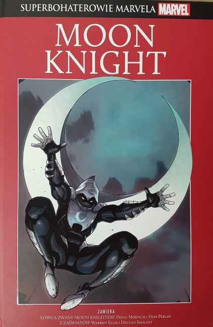 Obłąkany samozwańczy obrońca sprawiedliwości o mocach egipskiego bóstwa: przed wami Moon Knight! Gdy w świecie Marvela zapada noc, na ulice Nowego Jorku powraca awatar egipskiego boga Chaosu, by bronić nocnych podróżników przed złem! Legendarny scenarzysta Warren Ellis użycza swego pióra Marvelowi, by wraz ze znakomitym rysownikiem Declanem Shalveyem opowiedzieć historię ponownych narodzin jednego z najbardziej intrygujących bohaterów Domu Pomysłów. Ponadto znajdziecie tu również historyczny debiut nocnego rycerza w białym płaszczu, w którym staje on do pojedynku z wilkołakiem!